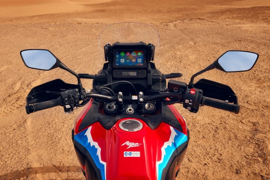 Atunci când nu ești concentrat direct pe traseu, informațiile esențiale sunt afișate pe tabloul de bord. De aceea, Africa Twin este echipată cu un ecran TFT tactil de 6,5 inchi, cu suport pentru Apple CarPlay® și conectivitate Bluetooth. Transmisia cu dublu ambreiaj (DCT) permite atât schimbarea automată, cât și cea manuală a treptelor de viteză, iar funcția G optimizează răspunsul transmisiei pentru un control îmbunătățit pe teren accidentat.
