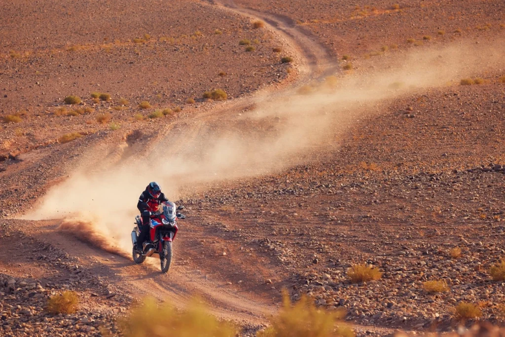Africa Twin este proiectată pentru a face față provocărilor reale ale aventurii, dincolo de drumurile asfaltate. Motocicleta oferă o manevrabilitate precisă și un control excelent în off-road, permițându-ți să abordezi cu încredere o varietate largă de terenuri. Pe drumuri forestiere rapide rămâne stabilă și ușor de controlat, iar pe trasee tehnice, cu pietre, denivelări și urcări dificile, răspunde prompt și previzibil la fiecare comandă. Indiferent de ritm sau condiții, Africa Twin îți oferă echilibrul ideal între putere, agilitate și siguranță, astfel încât să te poți concentra pe traseu și pe experiența de pilotaj.