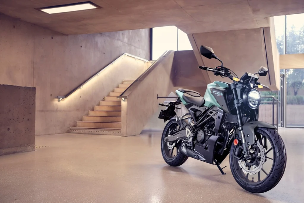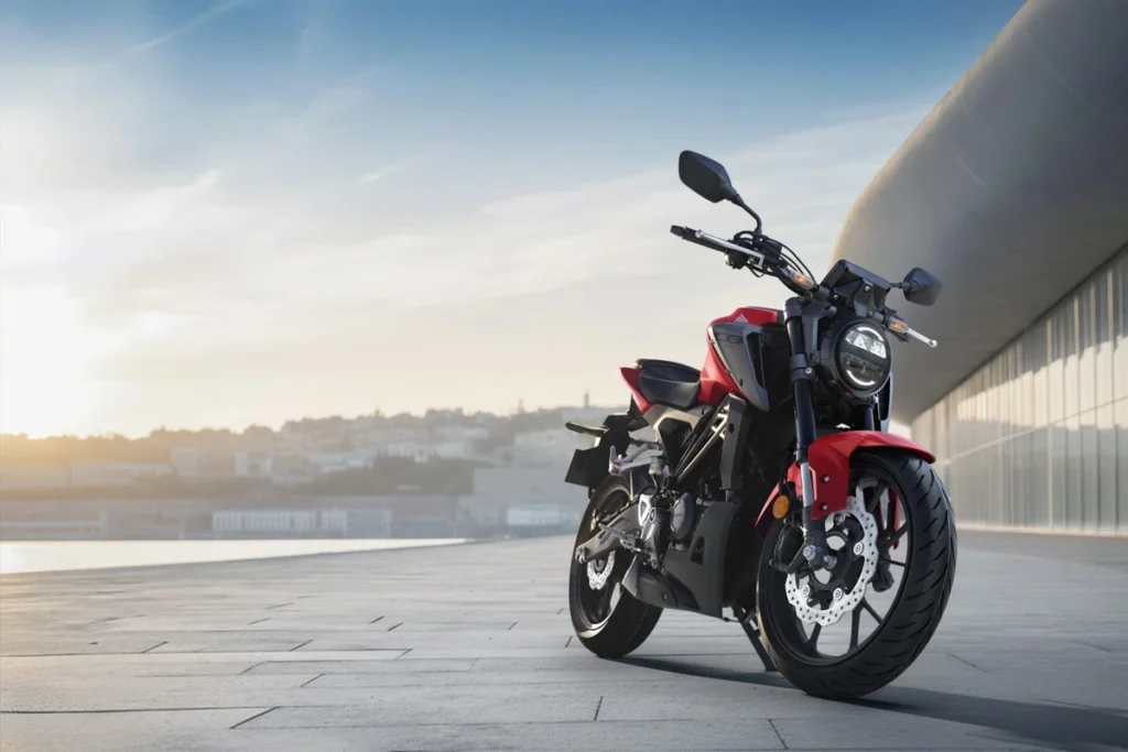 Parte din familia Neo Sports Café, CB125R se remarcă printr-un design compact și bine definit. Farul LED rotund, cadrul tubular din oțel și ecranul TFT color de 5” îi dau o identitate clară, în timp ce motorul DOHC de 125 cm³ și suspensia Showa SFF-BP oferă reacții precise și un condus cursiv, indiferent de ritm sau traseu.