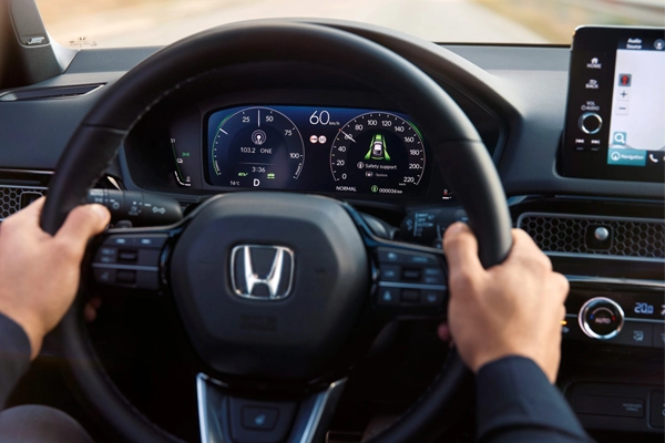 Modurile de condus inteligente disponibile pe noul Honda Civic e:HEV Hybrid se adapteaza automat in timpul mersului, oferind echilibrul perfect intre eficienta si performanta. Sistemul gestioneaza intuitiv energia, asigurand putere maxima atunci cand este nevoie si consum optim in orice conditii de drum.