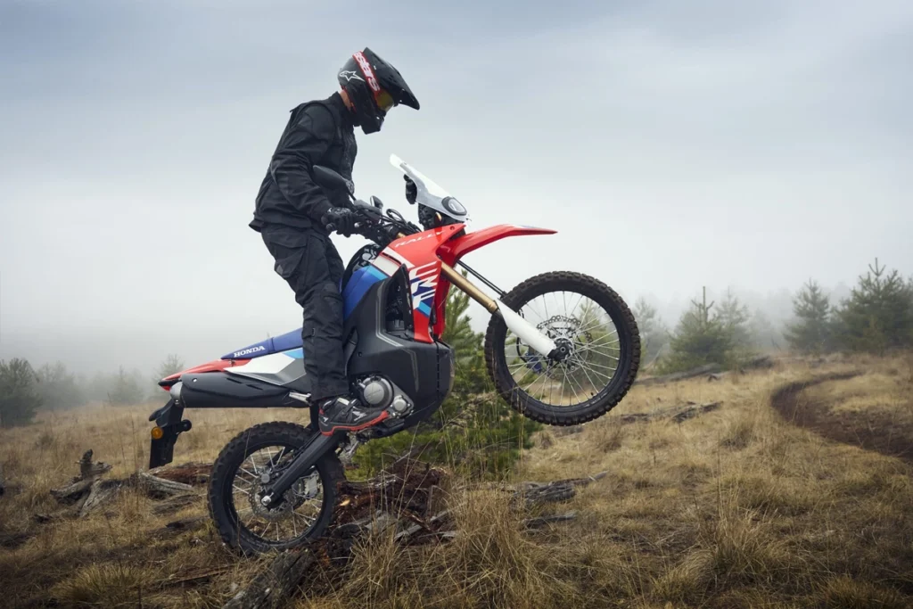 Inspirat de HRC CRF450 RALLY, CRF300 Rally combină performanțe off-road cu autonomie și confort sporit, datorită rezervorului generos de 12,8 litri și carenajului cu parbriz larg, care protejează pilotul și oferă o experiență plăcută pe distanțe lungi. Motorul de 27,3 CP, șaua la 885 mm și consumul mixt de 3,1 l/100 km fac din această motocicletă o alegere versatilă, compatibilă cu permisele A2 și A, pregătită să transforme orice traseu într-o aventură memorabilă.