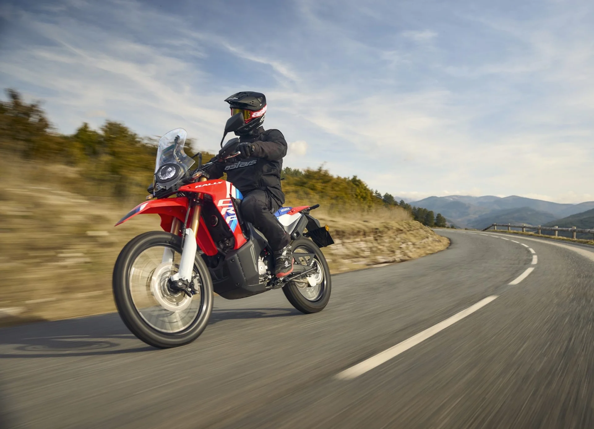 CRF300 Rally aduce tehnologie inspirată de CRF450 RALLY, cu parbriz flotant și carene superioare și inferioare care protejează pilotul de elementele exterioare, far asimetric LED și semnalizatoare LED pentru vizibilitate sporită on și off-road. Rezervorul mărit la 12,8 L oferă autonomie de peste 400 km, iar motorul mai mare, cu Assist/Slipper Clutch, livrează 27,3 CP și 26,6 Nm de cuplu pentru control precis. Greutatea redusă cu 4 kg, garda la sol mărită la 275 mm și suspensia performantă SHOWA cu furcă USD de 43 mm și amortizor spate asigură manevrabilitate excelentă, în timp ce discurile față flotante cu ABS și posibilitatea de a dezactiva ABS-ul pe roata spate sporesc siguranța. Roțile de 21” față și 18” spate, echipate cu anvelope dual-purpose, permit explorarea liberă a oricărui teren și adaptarea rapidă la condiții off-road sau enduro.
