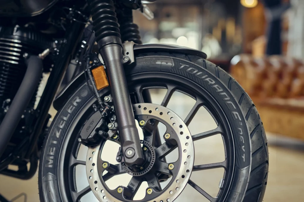 GB350S oferă senzația de conectare totală prin cadrul tubular semidublu din oțel, roțile de 19 și 17 inch și anvelopele radiale late, care asigură aderență optimă. Agil și precis, modelul este plăcut la condus și se descurcă fără efort atât în traficul urban, cât și în escapadele de weekend, oferind control total și încredere la fiecare viraj