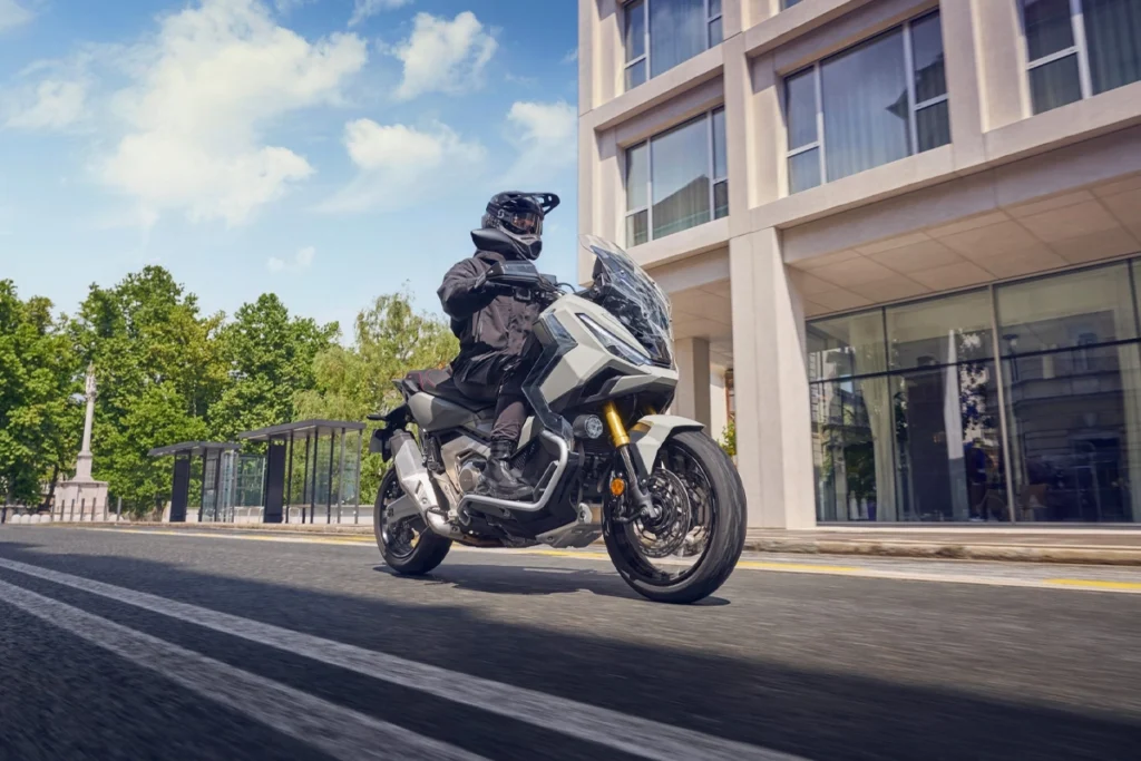 Iluminarea full LED cu DRL și semnalizatoare integrate crește vizibilitatea, iar spațiul de depozitare extins la 21 l poate găzdui o cască full-face și include priză USB-C pentru încărcare rapidă. Display-ul TFT color de 5” rămâne lizibil în lumină puternică și se operează intuitiv prin comutatorul iluminat de pe ghidon, permițând selectarea rapidă a modurilor de condus și personalizarea afișajului, fiind protejat de un parbriz reglabil pe trei poziții cu o singură mână. Confortul este completat de sistemul Smart Key, semnalizatoare cu auto-canceling și Emergency Stop Signal, motorul de 745 cc cu 58,6 CP și 69 Nm, Throttle By Wire cu cinci moduri de condus, transmisia DCT optimizată, suspensia cu cursă lungă complet ajustabilă și Cruise Control oferit standard pentru deplasări relaxate pe distanțe mari.